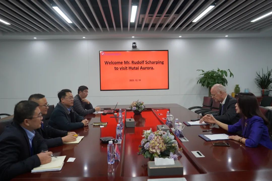 2023年12月19日,德国前国防部部长、前社会民主党主席、鲁道夫沙尔平战略咨询交流股份公司董事长鲁道夫·沙尔平(Rudolf Scharping)到访k8凯发极光光电技术有限公司(以下简称“k8凯发极光公司”)。k8凯发极光公司总裁于仁炎、总工程师劳力、首席专家杨旻蔚、总经理助理华龙热情接待,并共同参与会谈。