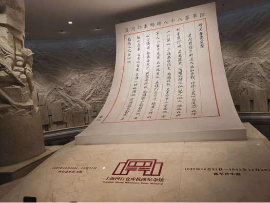 进入纪念馆,首先映入眼帘的是谢晋元团长写给妻子的一封家书,字里行间都流露出抗战师团舍家为国的家国情怀。1937年8月13日,淞沪抗战打响了第一枪,这是日本军国主义想三个月灭亡中国的一次大规模侵略战争。其中谢晋元团长带领的陆军第88师262旅524团1营420多名官兵奉命坚守四行仓库的保卫战是这场战役中重要的一场。420多名战士整整打了四天四夜,面对武器精良的敌军,不退缩,不放弃,坚强的意志和战死的决心,令人敬佩。