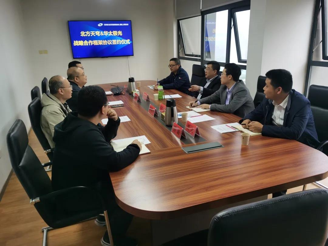 2021年4月23日,公司总经理张韧、副总经理于仁炎、副总工程师劳力及相关人员赴北方天穹信息技术(西安)有限公司就太赫兹相关技术在气象探测装备领域的应用进行深入探讨并签署双方《战略合作框架协议》。北方天穹总经理房轶丁、副总经理卢建平及创新发展中心、综合管理中心相关负责人参加座谈并出席签约仪式。