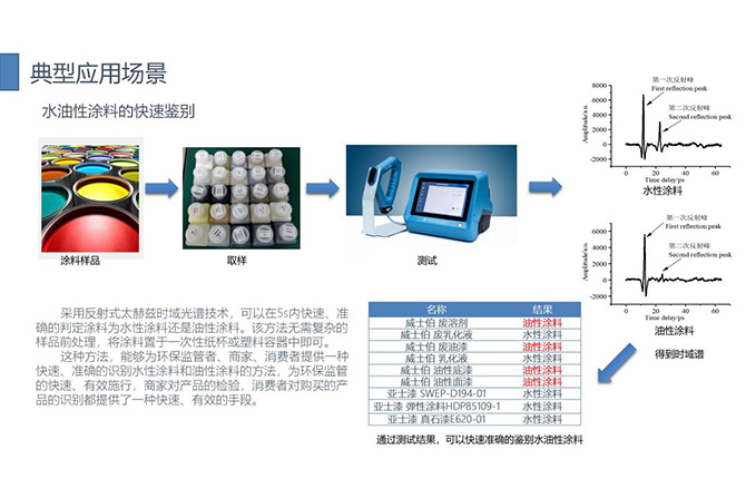 对固危废进行无损、原位、快速的太赫兹定性定量检测,对水油性涂料进行快速鉴别,以缩短环境执法时限,提升固危废监管能力,降低城市整体环境风险。